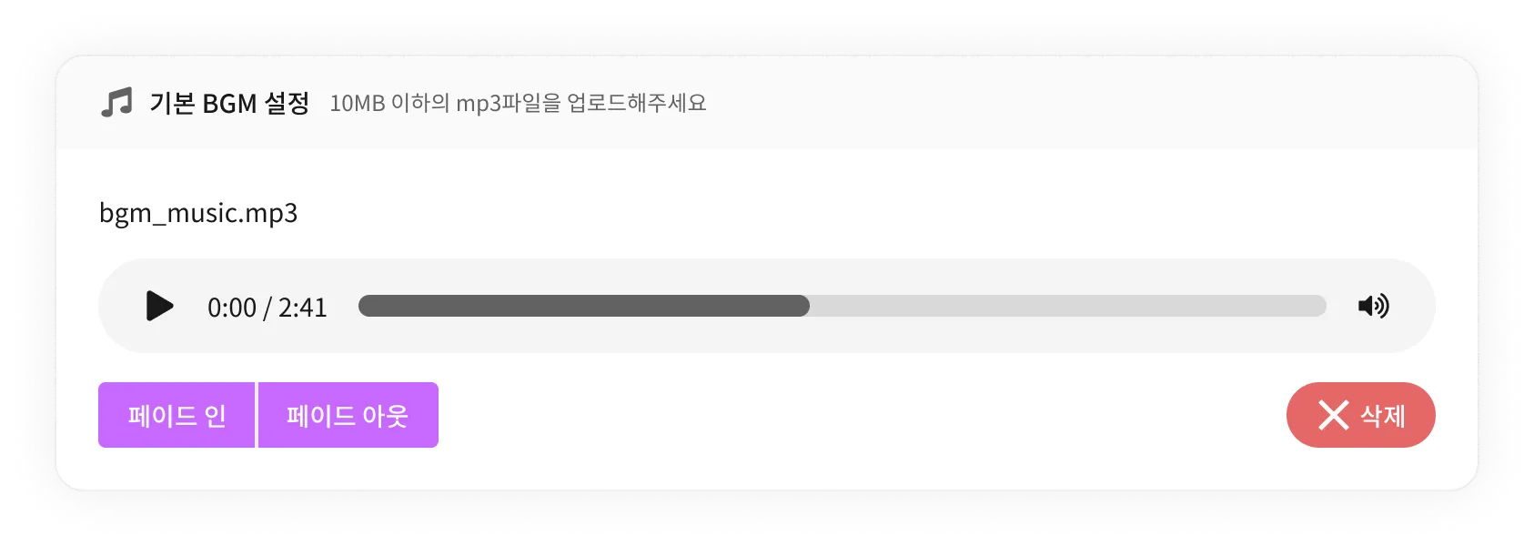 10MB이하의 mp3 파일만 업로드 할 수 있어요.