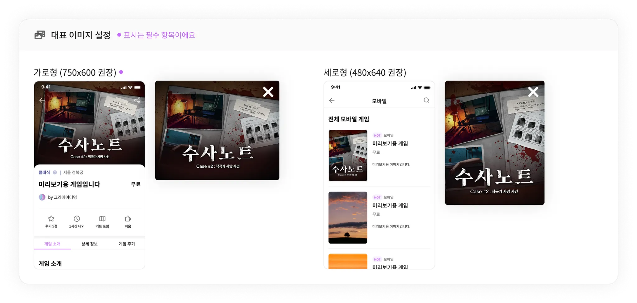 게임 상세페이지와 리스트의 썸네일로 보여지는 이미지예요.