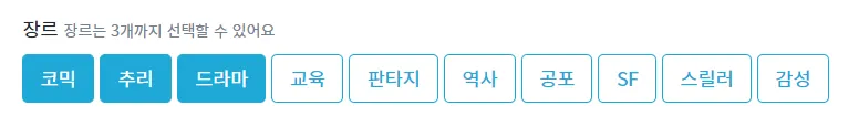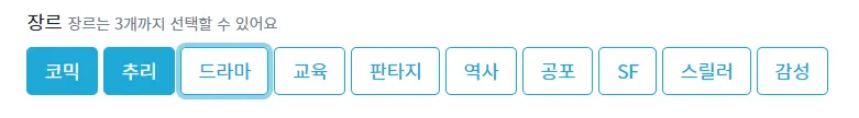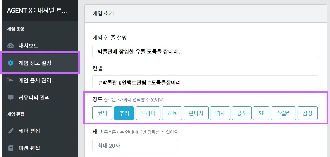 장르는 최대 3개까지 선택할 수 있습니다. 게임의 성격을 플레이어에게 가장 잘 설명할 수 있는 조합으로 장르를 구성해 보세요.