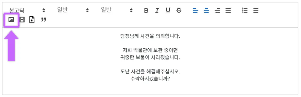 미션 설정에서 이미지를 첨부할 시 반드시 첨부 아이콘을 눌러 파일을 첨부하시기 바랍니다.