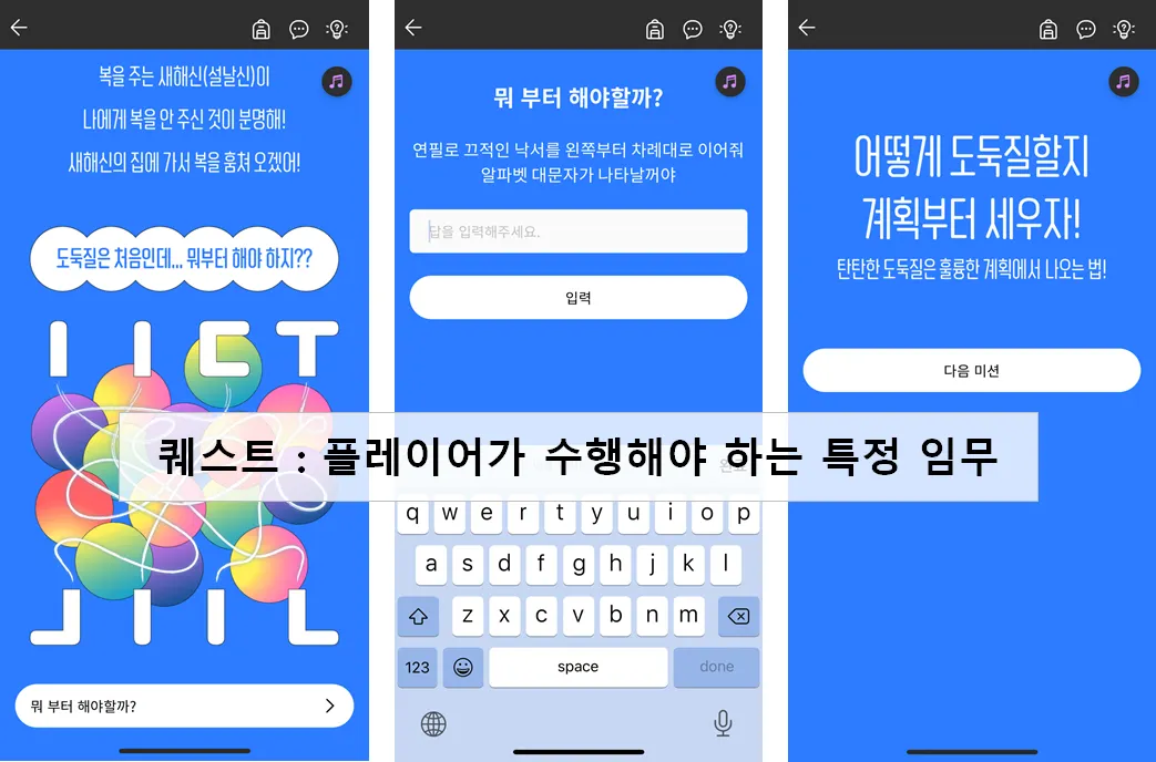 퀘스트는 미션 내에서 플레이어가 수행해야 하는 특정 임무를 의미합니다.