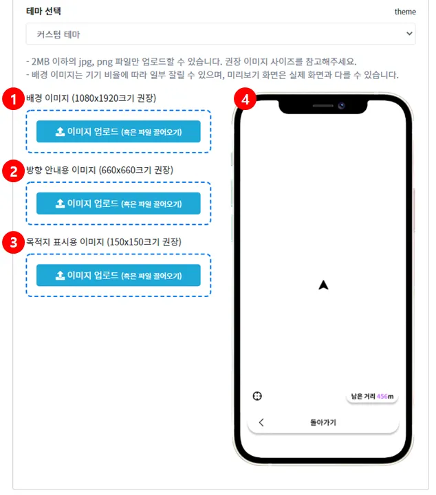 이미지를 업로드하면 미리보기 화면으로 앱에 적용될 화면을 미리 확인할 수 있습니다.