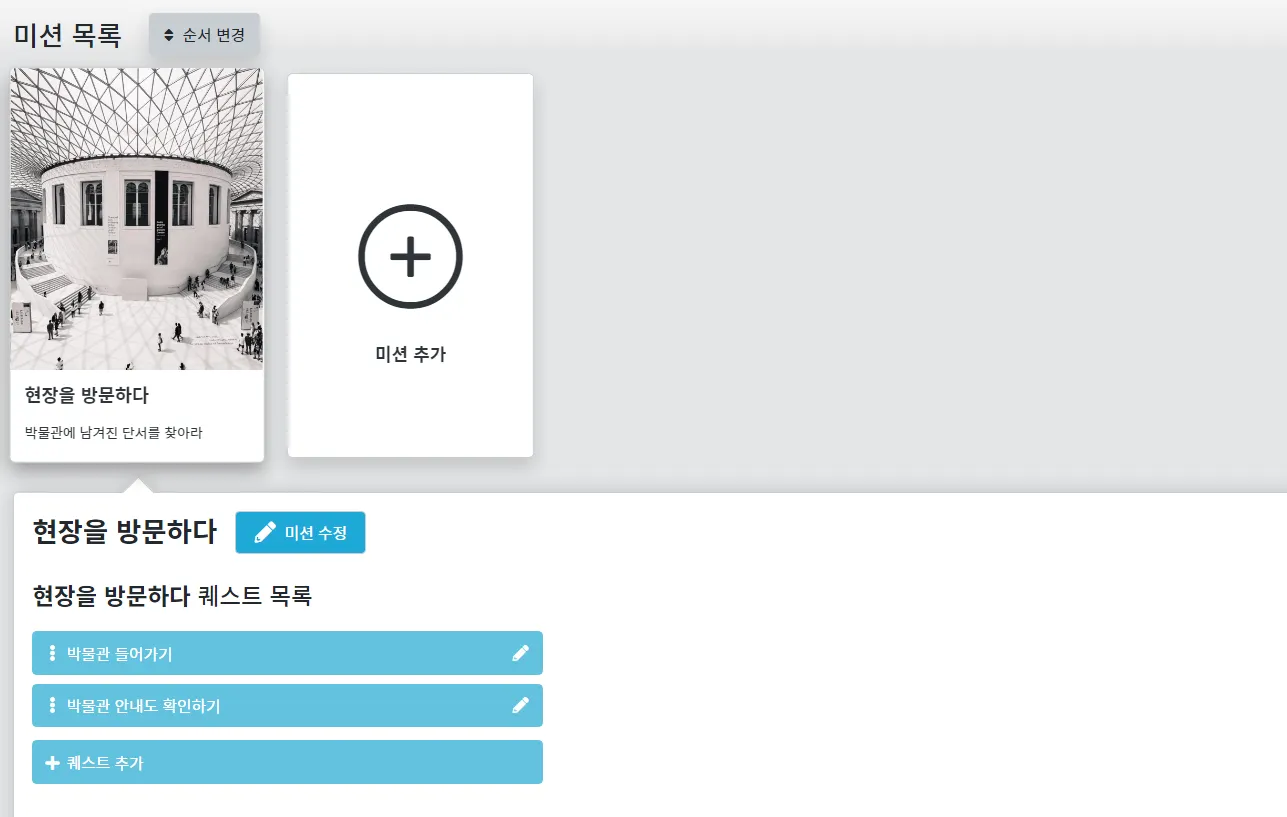 퀘스트를 만들 미션을 선택하고 퀘스트를 2개 이상 생성합니다.