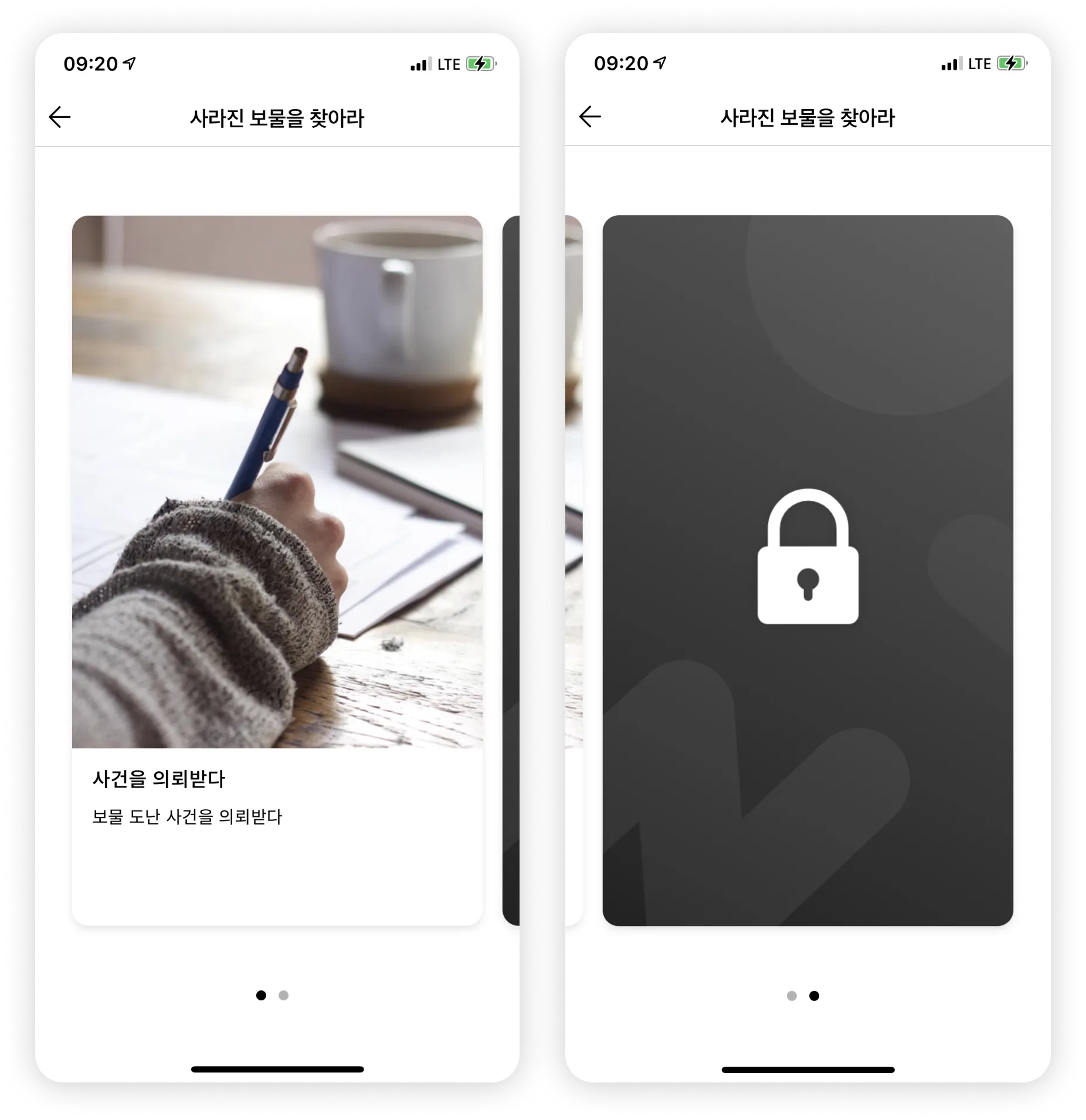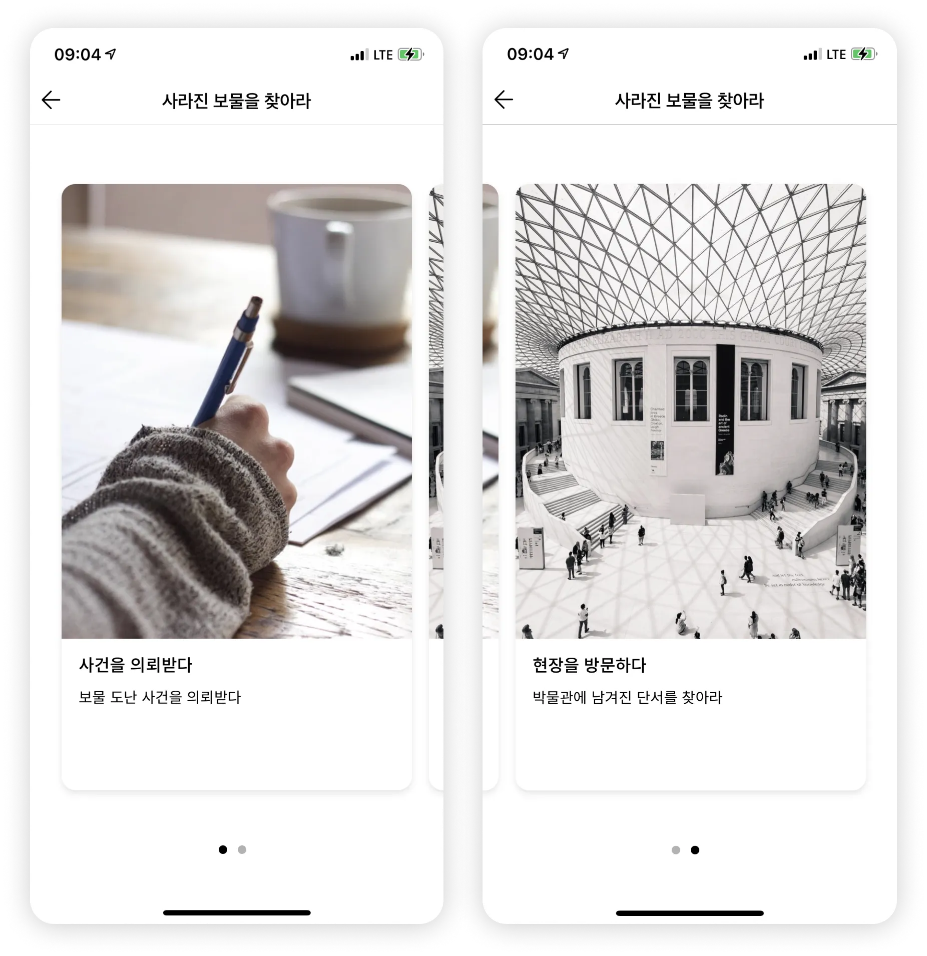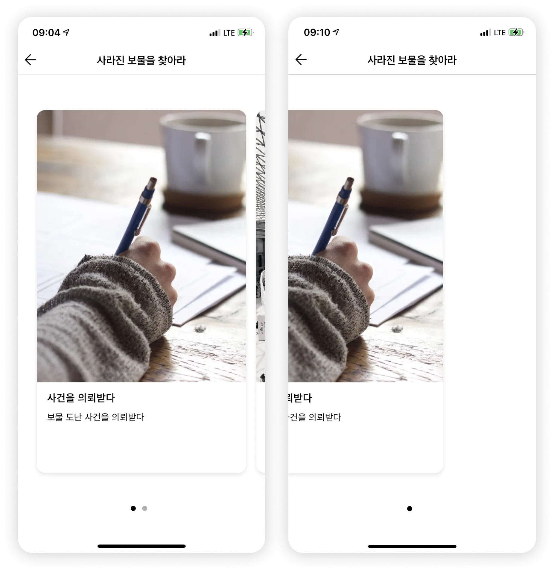 리얼월드 앱에서 확인해보면 사건을 의뢰받다 뒤로 미션 카드가 모두 숨겨진 것을 볼 수 있어요.