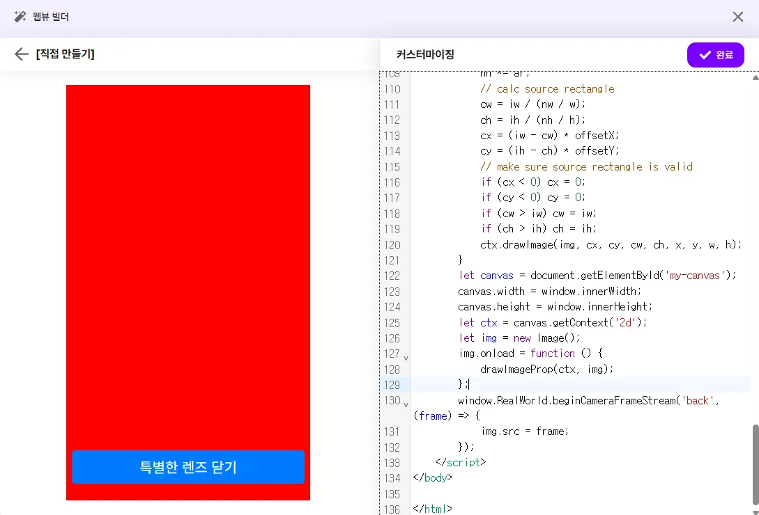 리얼월드 앱에서 확인해보면 특수렌즈 기능이 잘 실행되고 있음을 알 수 있어요.