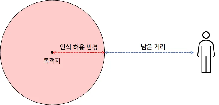 목적지의 정확한 위치보다는 허용 반경 안에 들어갈 수 있도록 활용하는 걸 권장드려요.