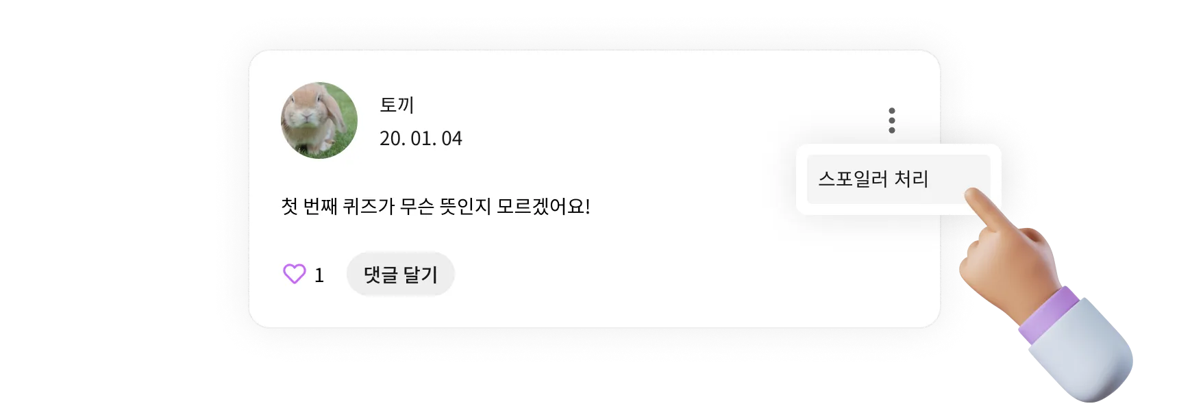 스포일러 처리를 원하는 게시글 오른 쪽에 있는 더보기 아이콘을 클릭해요