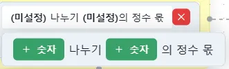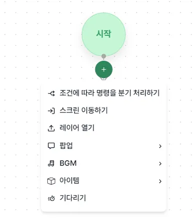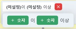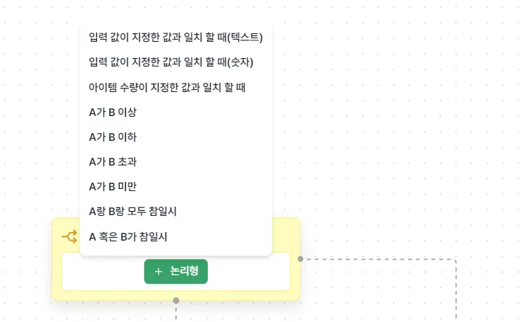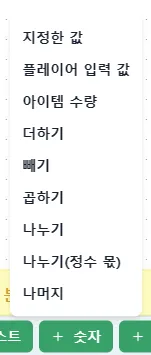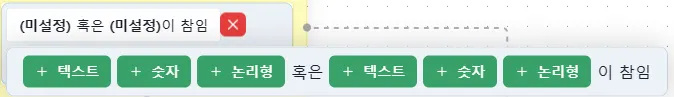 로직 에디터 내 + 아이콘을 눌러 설정할 수 있으며 종류는 아래와 같습니다.