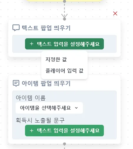 다만, 세팅이 매우 복잡해지고 세팅할 때 오류도 잦아질 수 있어 초보자가 제작할 때는 로직을 추가할 때 기본으로 세팅된 양식으로 콘텐츠 제작하는 것을 권장드립니다.