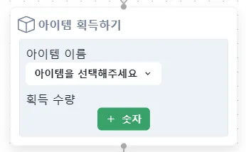 수량에 설정한 숫자만큼 아이템이 인벤토리에 추가됩니다.