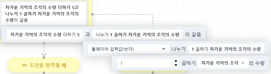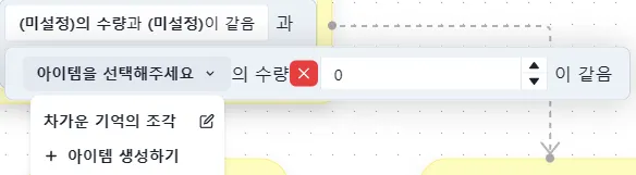 ’아이템 수량이 지정한 값과 일치 할 때’ 로직을 불러올 때 나온 기본 양식에서