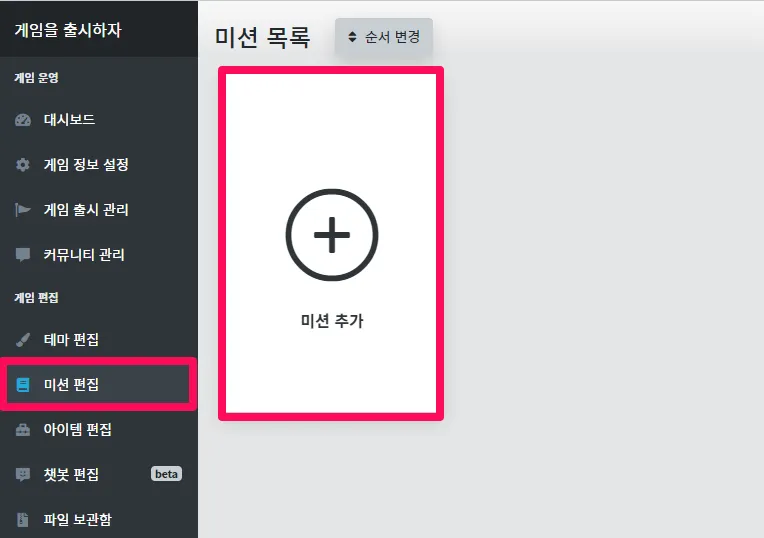 적어도 하나의 미션 카드가 등록되어 있어야 게임을 출시할 수 있습니다.