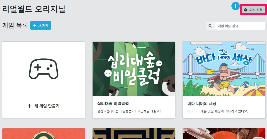 리얼월드 스튜디오 홈 → 채널 설정을 클릭합니다.