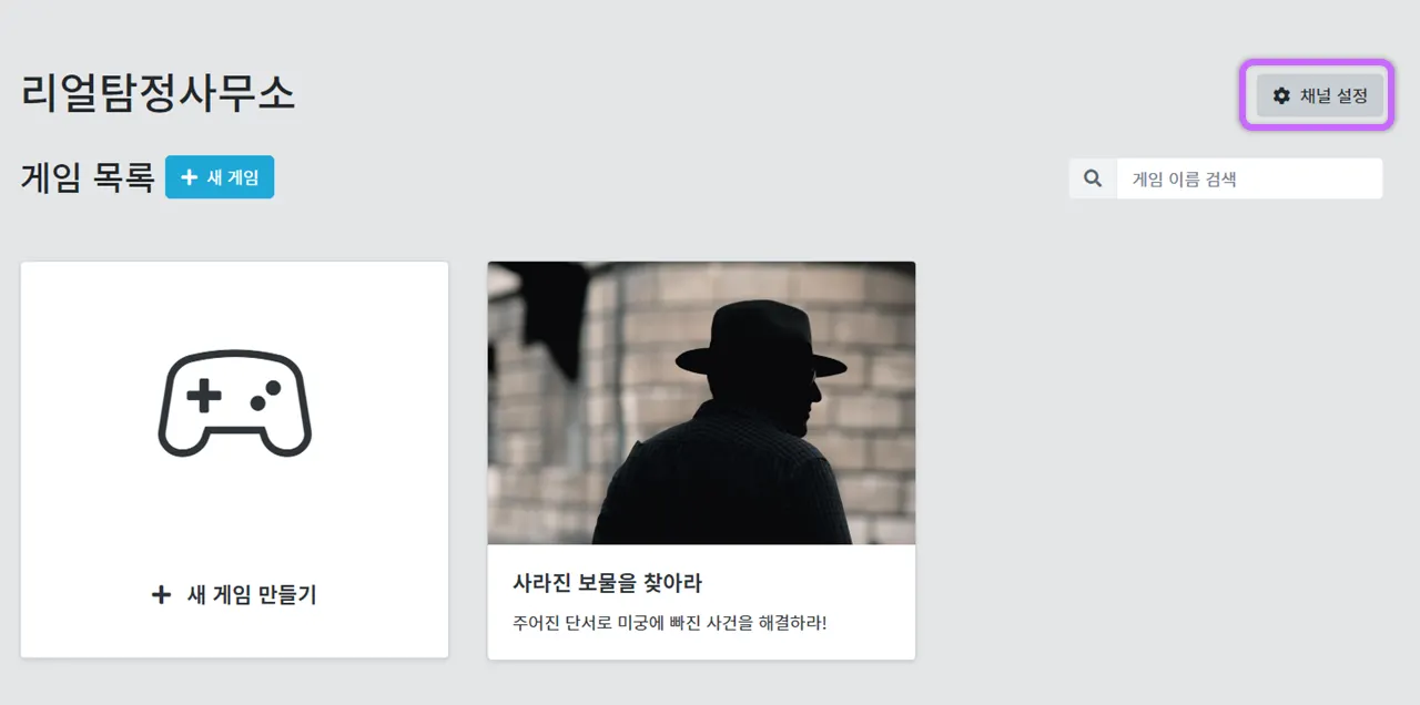 화면 오른쪽 상단에 위치한 '채널 설정' 버튼을 누릅니다.