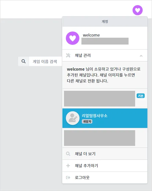 (초대를 받은 팀원일 경우) 채널 화면 오른쪽 상단의 프로필 이미지를 클릭하여 채널 목록을 확인해보면 초대 받은 채널로 이동할 수 있습니다.