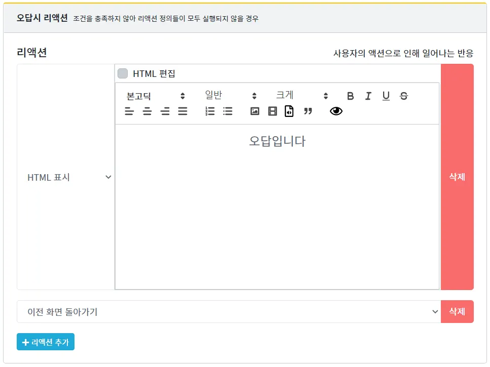만약 다른 QR코드를 인식할 경우를 대비해서 오답시 리액션도 설정합니다.