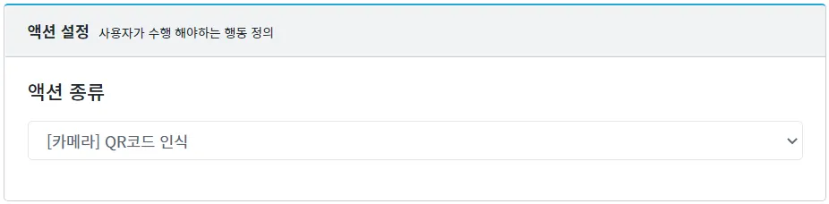 액션 설정은 '[카메라] QR코드 인식'으로 설정합니다.