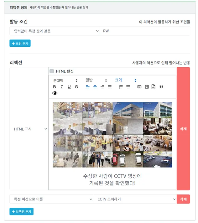 발동 조건은 '입력값이 특정 값과 같음'으로 설정합니다.