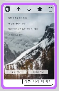 페이지 별 상세 설정입니다.(왼쪽부터 순서대로)