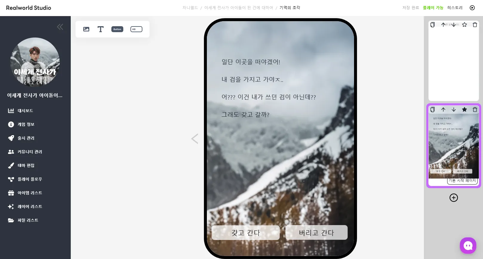 오른쪽 화면에서 특정 페이지를 클릭할 시 해당 페이지로 선택 및 이동해 편집이 가능해집니다.