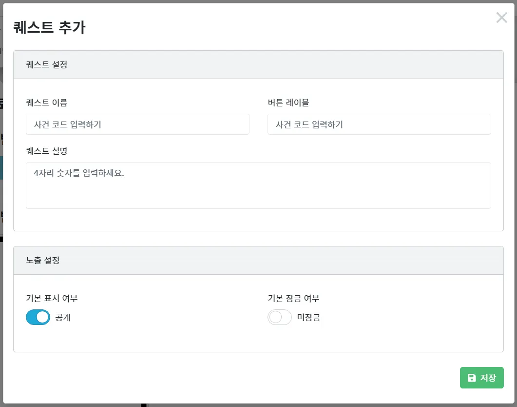 팝업창이 뜨면 퀘스트에 대한 일반적인 사항을 입력합니다.