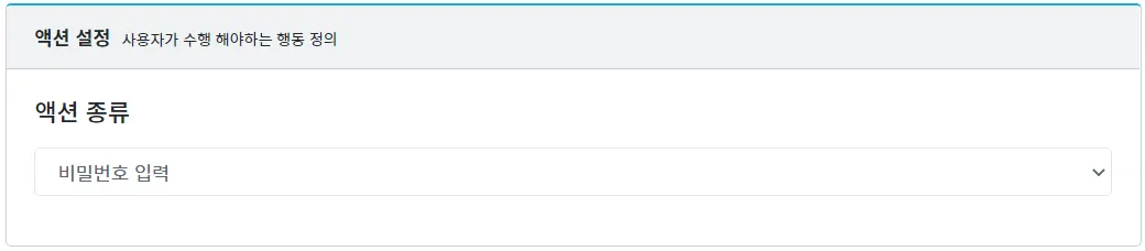 예시 퀘스트에서 액션 종류는 '비밀번호 입력'을 선택합니다.
