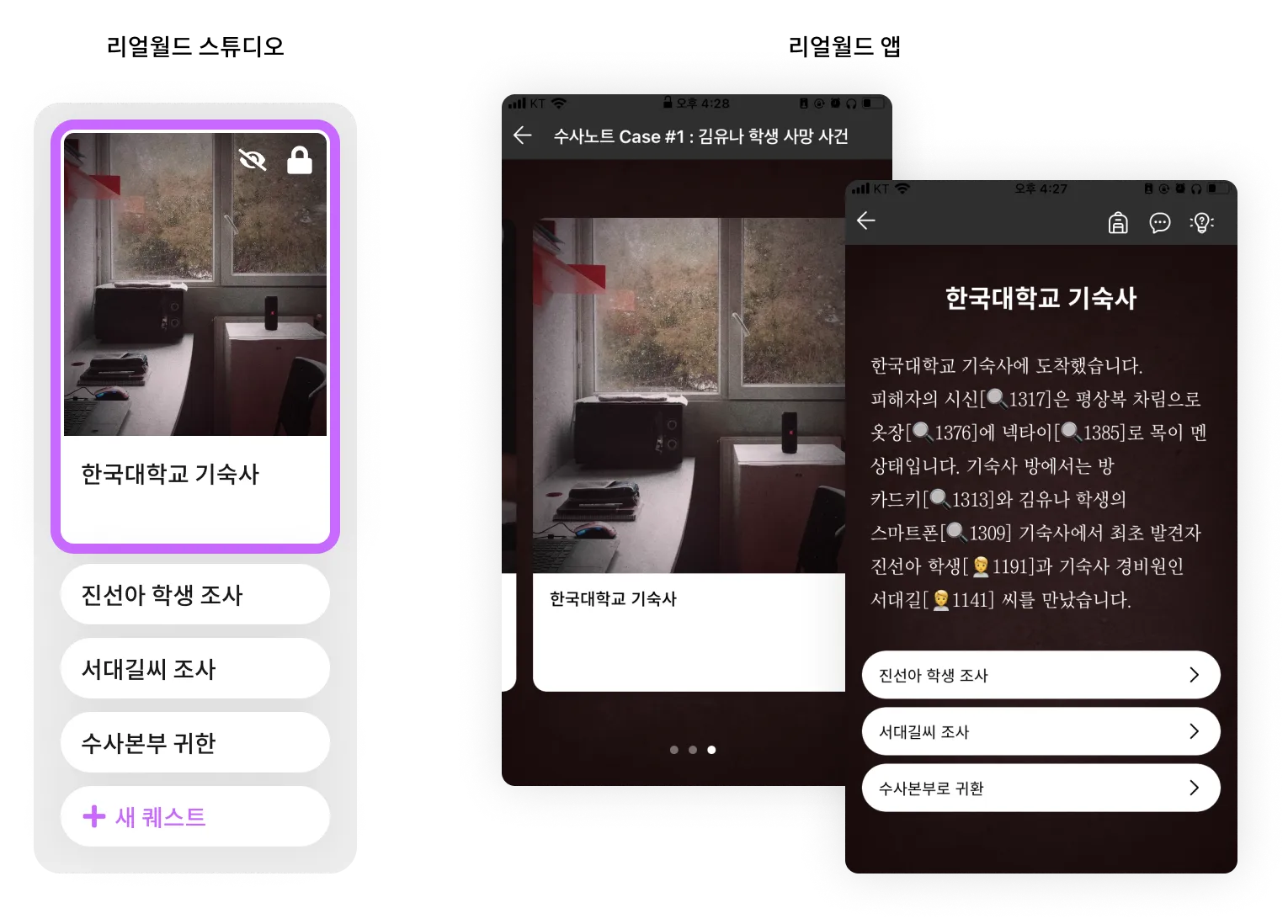 리얼월드 게임은 미션과 퀘스트로 구성되어 있어요.