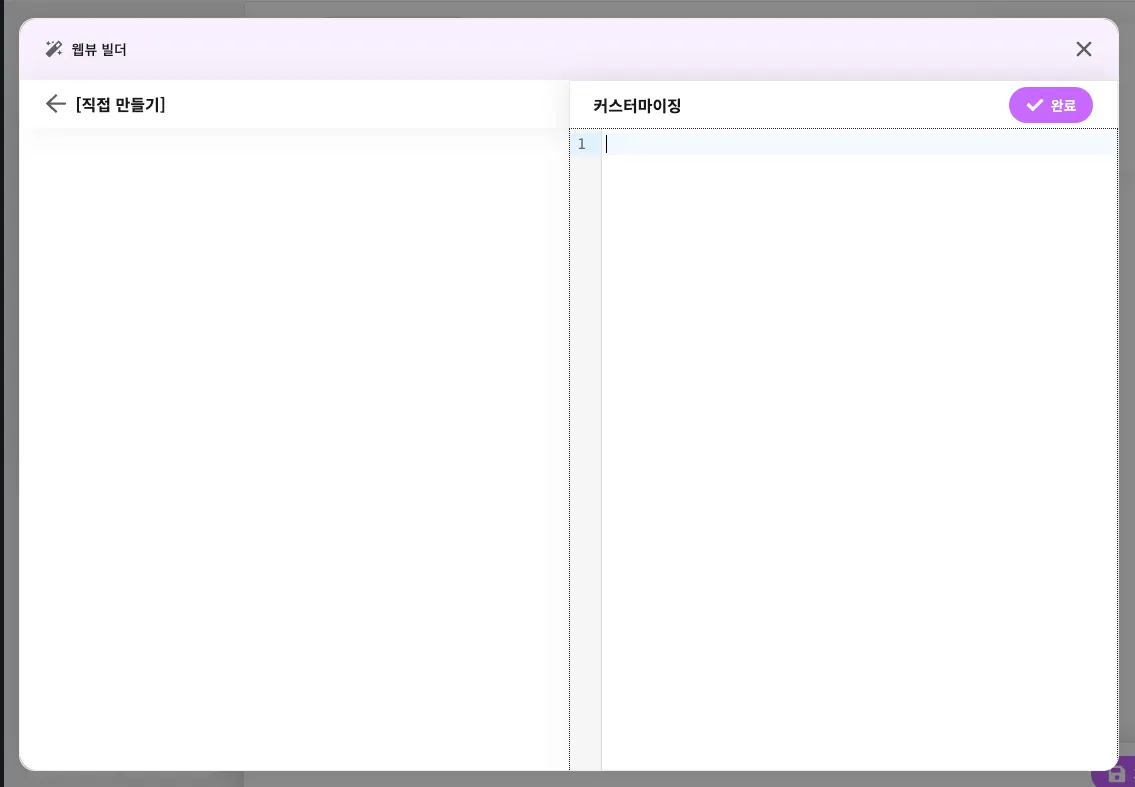 [직접 만들기]를 선택하여 HTML/CSS/JavaScript를 활용해 웹뷰를 직접 만들어 사용할 수 있어요.