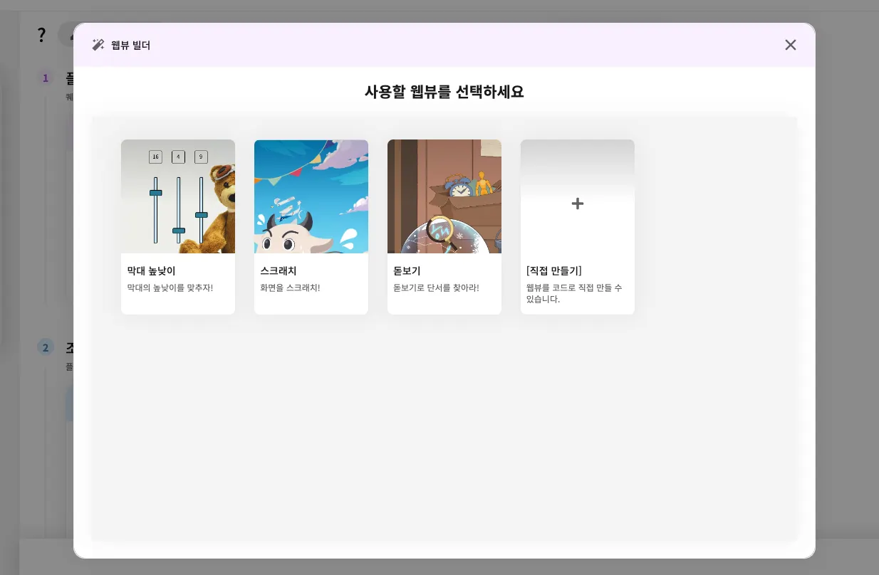 웹뷰 빌더 열기 버튼을 누르면 웹뷰 선택창이 나타나요.