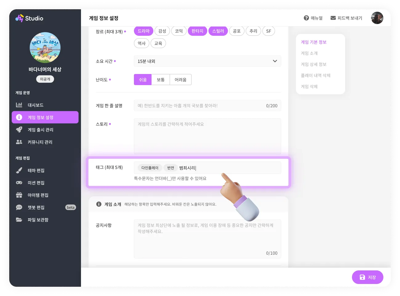 태그는 검색에 활용될 수 있는 게임 연관 키워드예요.