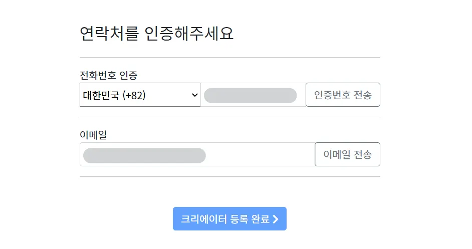 본인 소유의 휴대폰 및 이메일 계정을 입력해 인증을 받아야 합니다.