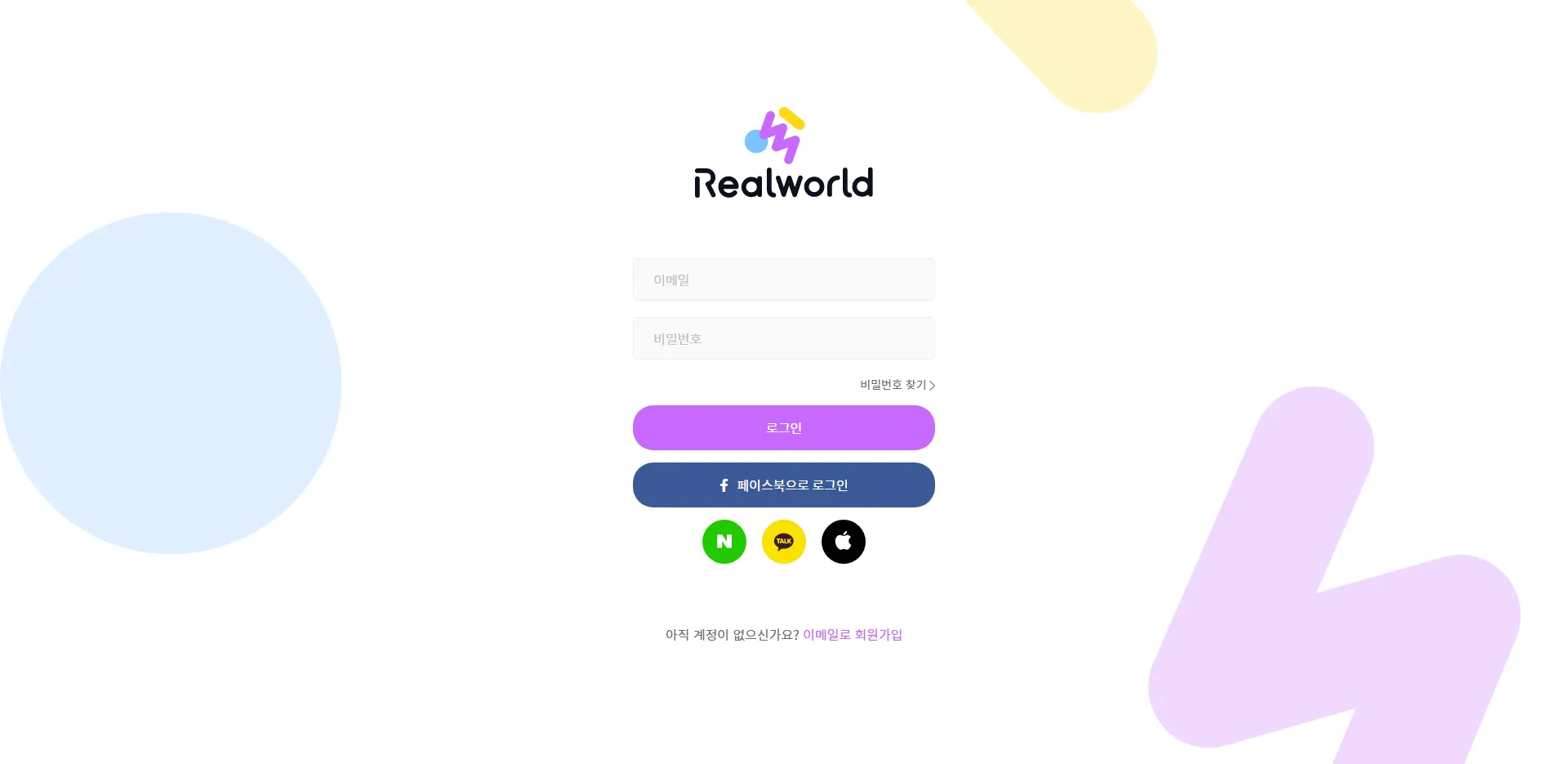 리얼월드 스튜디오 사이트 접속 후 리얼월드에 가입한 계정을 통해 로그인합니다.