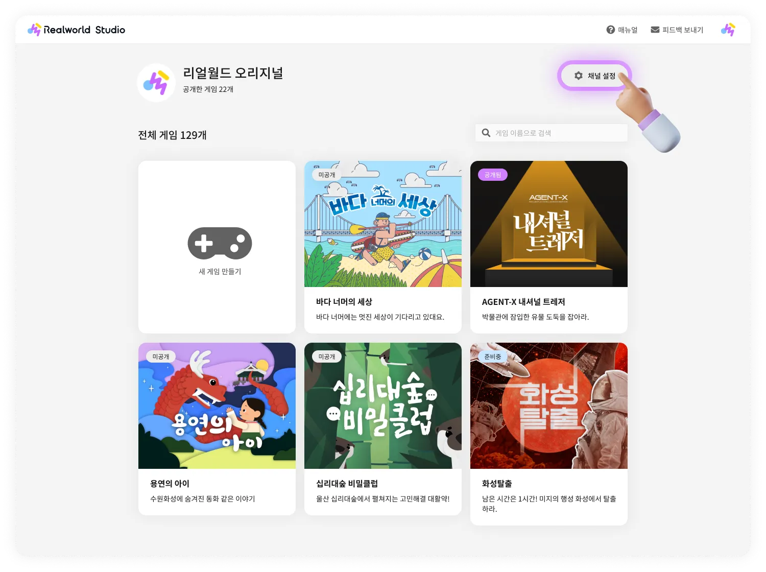여러 명이서 게임을 함께 제작하고 싶다면, 채널에 구성원으로 추가해보세요.