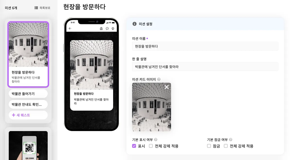 테스트를 해보면 잠금이 걸려 있지 않은 퀘스트 (박물관 돌아가기)를 해결하면, 잠금이 걸려 있는 퀘스트 (박물관 안내도 확인하기)의 잠금이 해제된 것을 확인할 수 있어요.