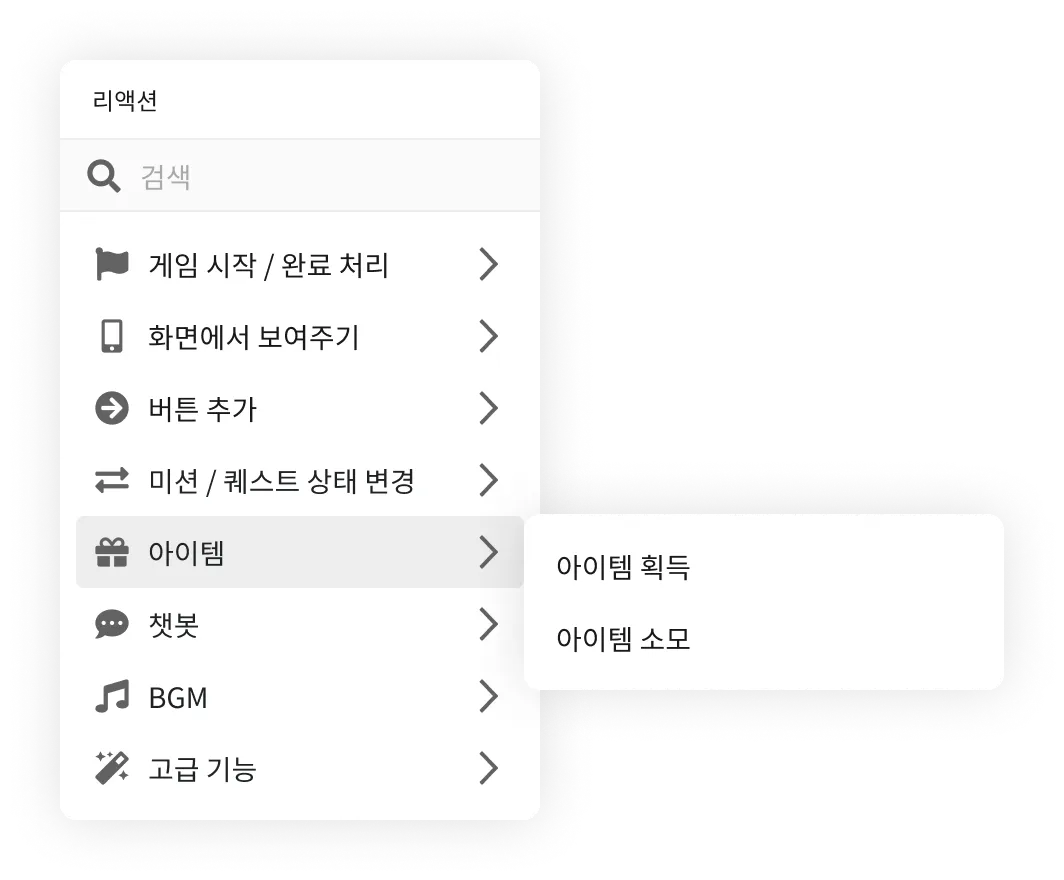 아이템 획득 / 소모 리액션에 대한 자세한 설명이 필요하다면 아래의 항목을 참고해주세요.
