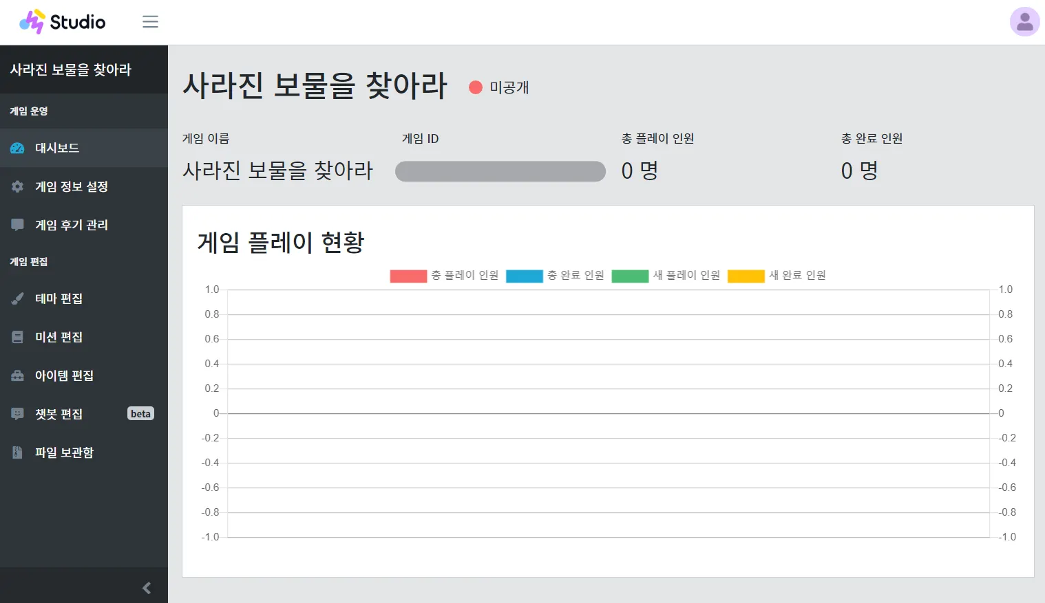 게임을 생성하면 자동으로 대시보드 화면으로 이동합니다.