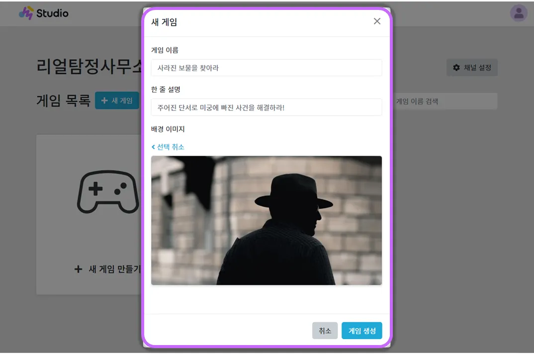 현재 게임 생성 시 선택한 이미지가 적용되어 있습니다.