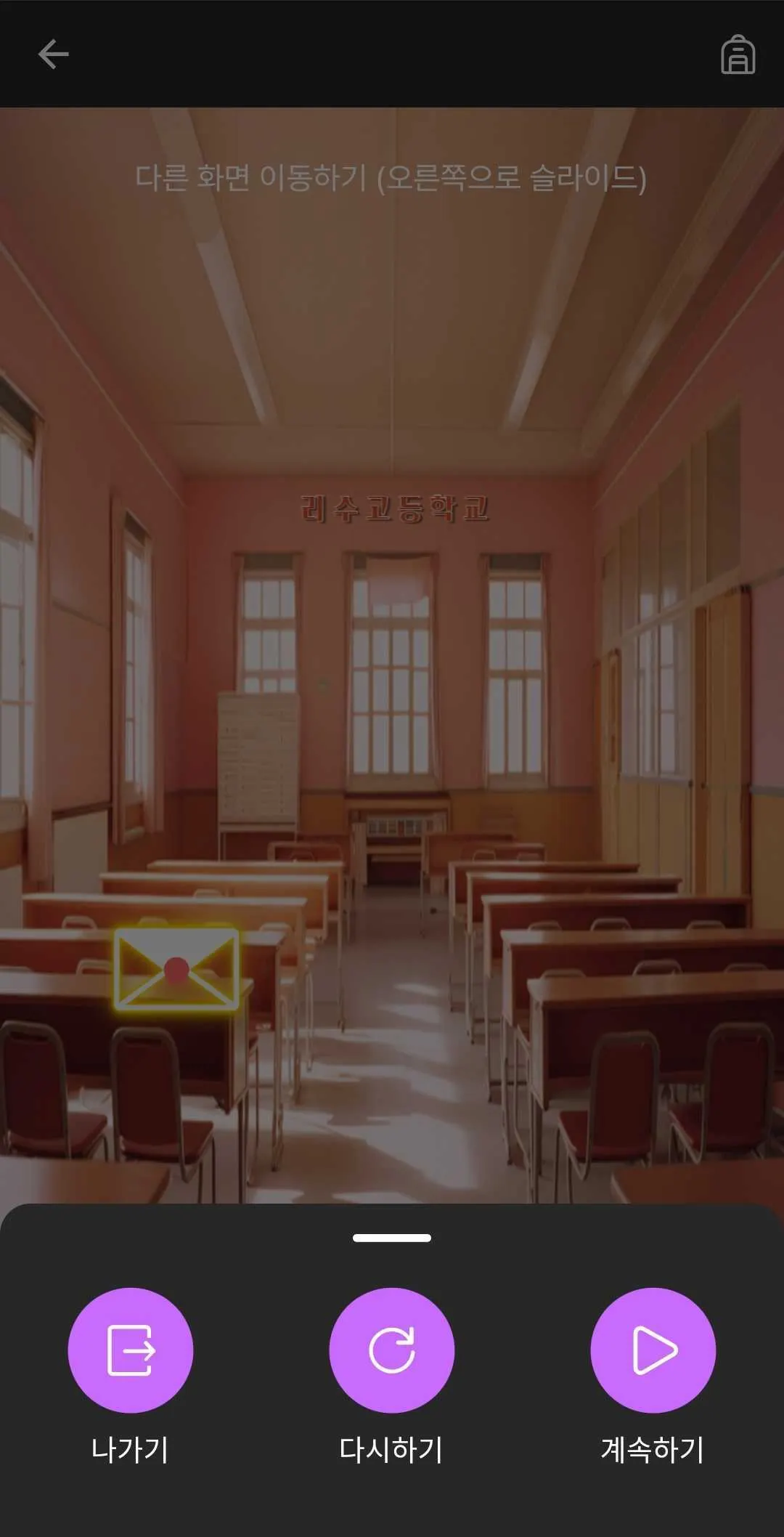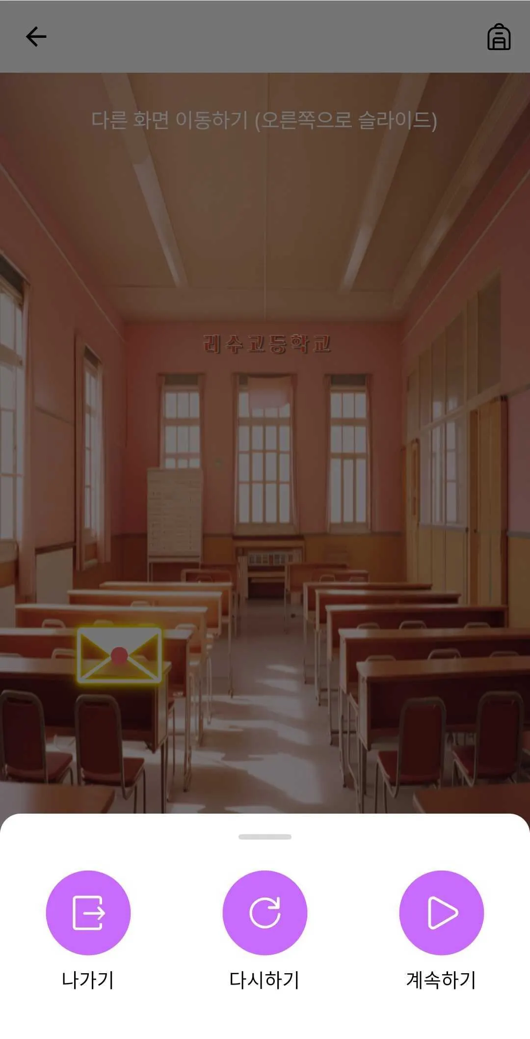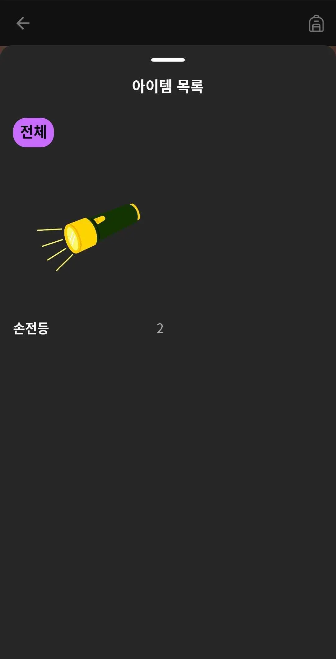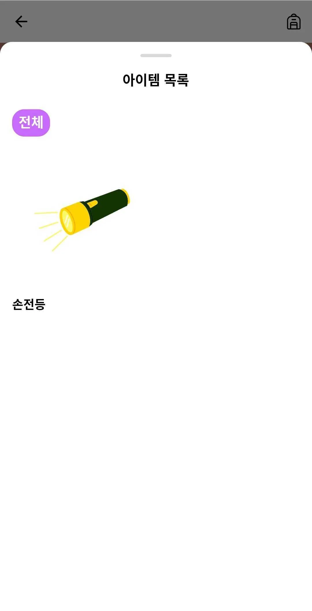아이콘을 눌러 나타나는 인벤토리(아이템 목록) 화면