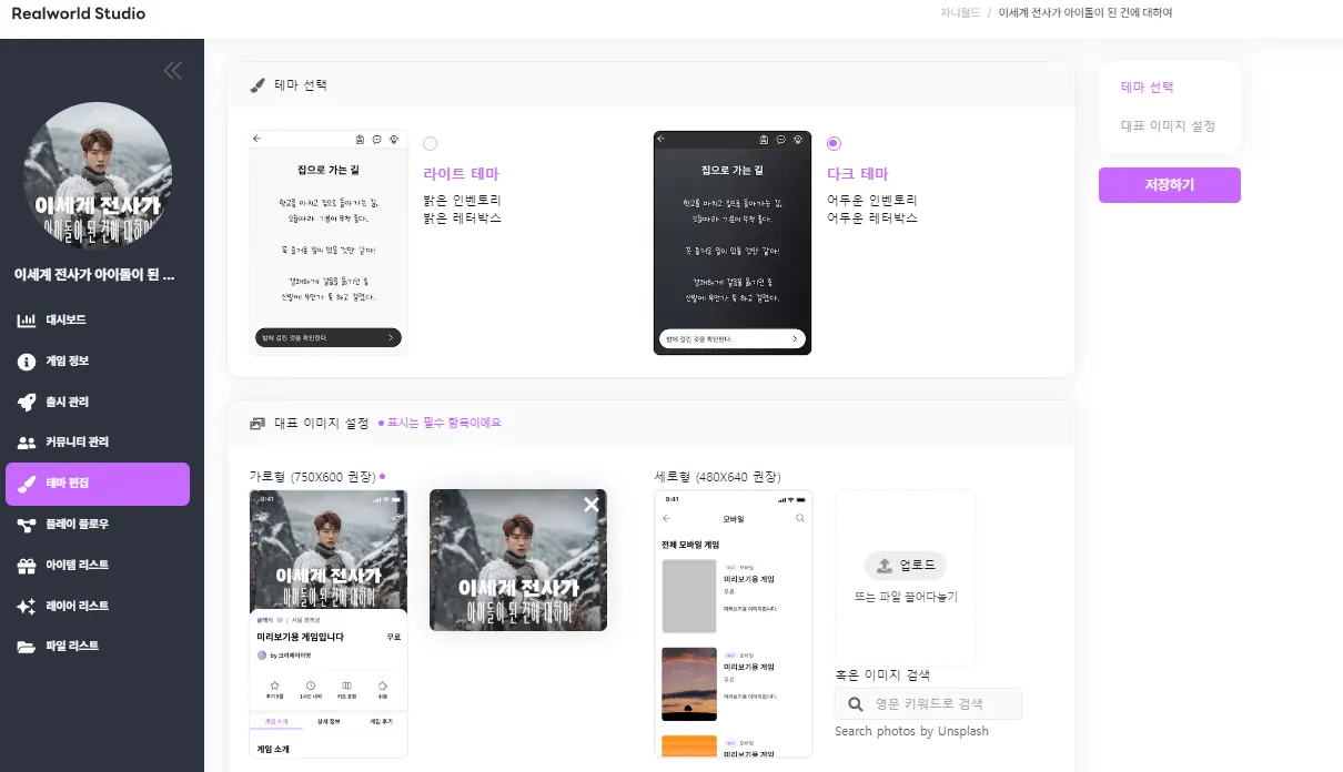 테마편집 : 게임의 테마를 편집할 수 있는 페이지