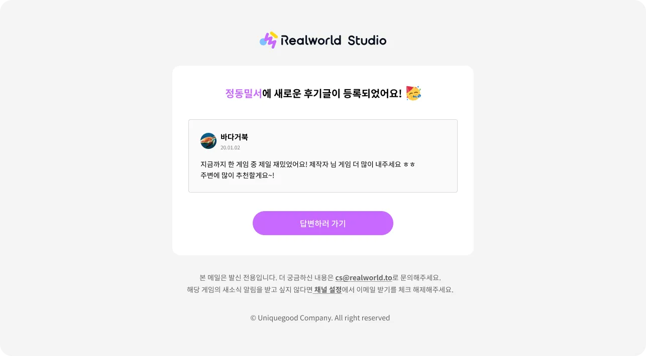 플레이어의 피드백과 제안을 메일로 받아볼 수 있어요.