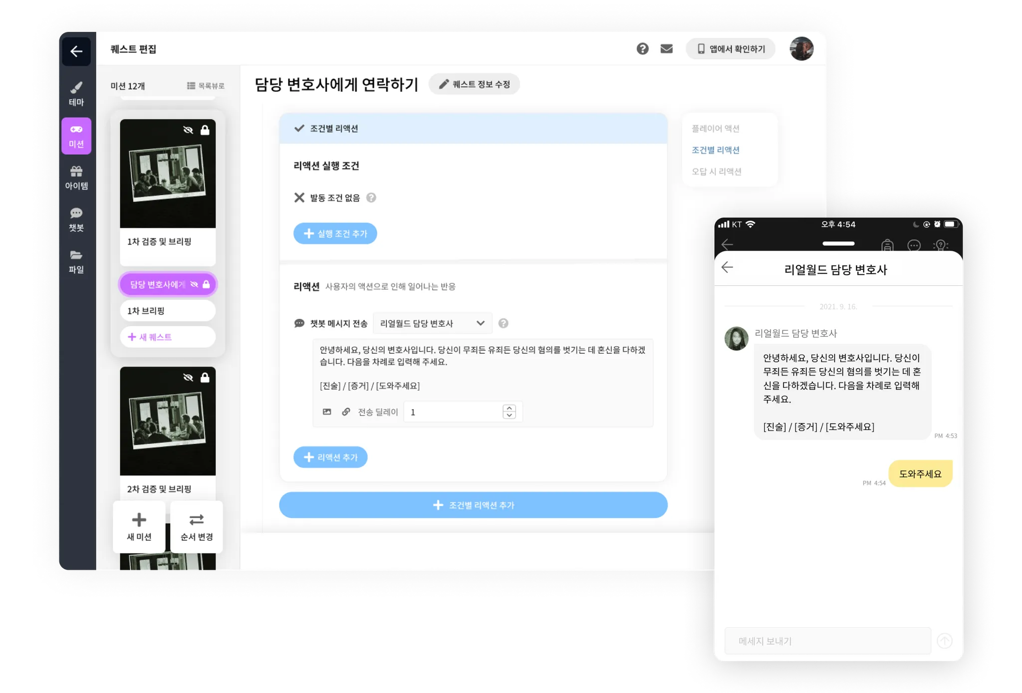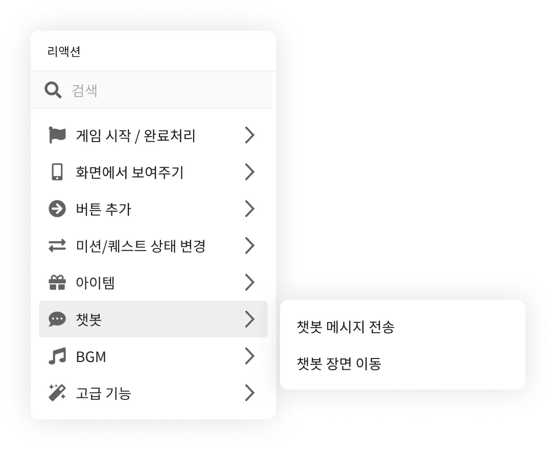 플레이어가 리액션 실행 조건을 만족하면 챗봇이 먼저 메시지를 보내는 기능이에요.